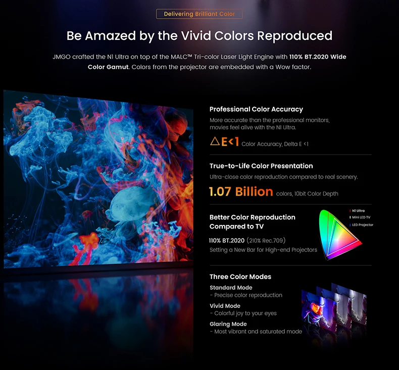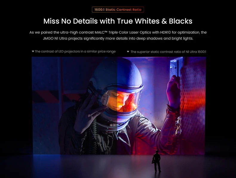The image quality of this projector is absurd! Sharp and vivid colors with a very good contrast. Very accurate Keystone and focus. The sound is well full-body. I’m impressed with his quality. The only negative point is not to have the netslide certification, hopefully correct this in the updates.