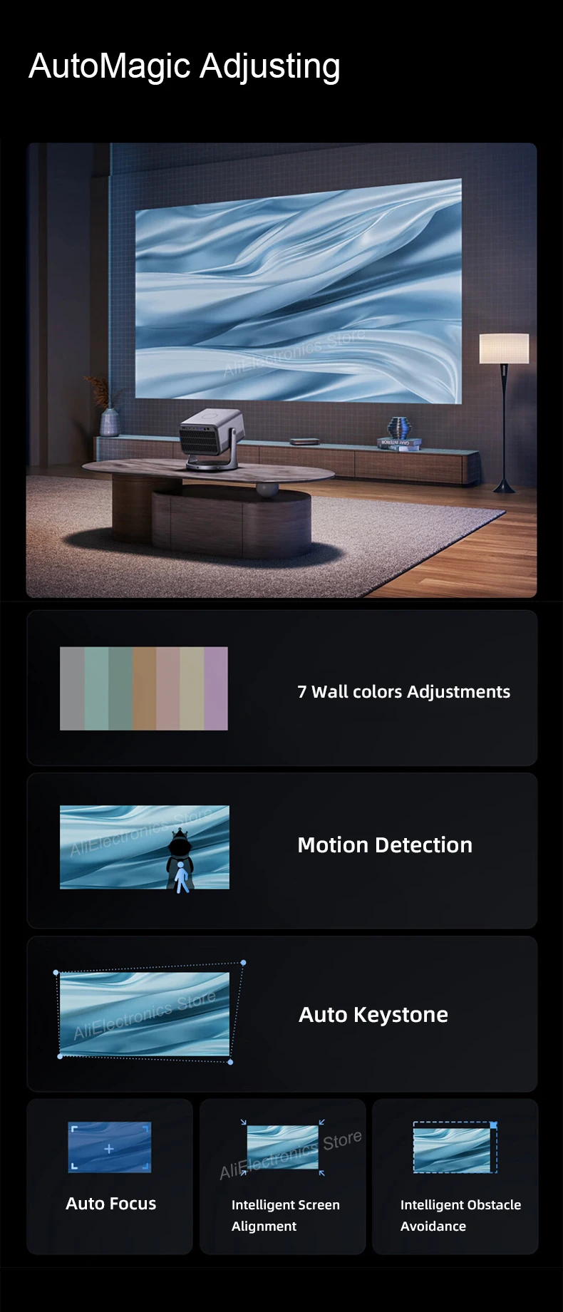 3. Auto Keystone, Auto Focus, Eye Care, Auto Avoid Obstacles, etc. are all auxiliary functions of the projector. If the image is not accurate after auto adjustment, please manually adjust it for use. Thank you!